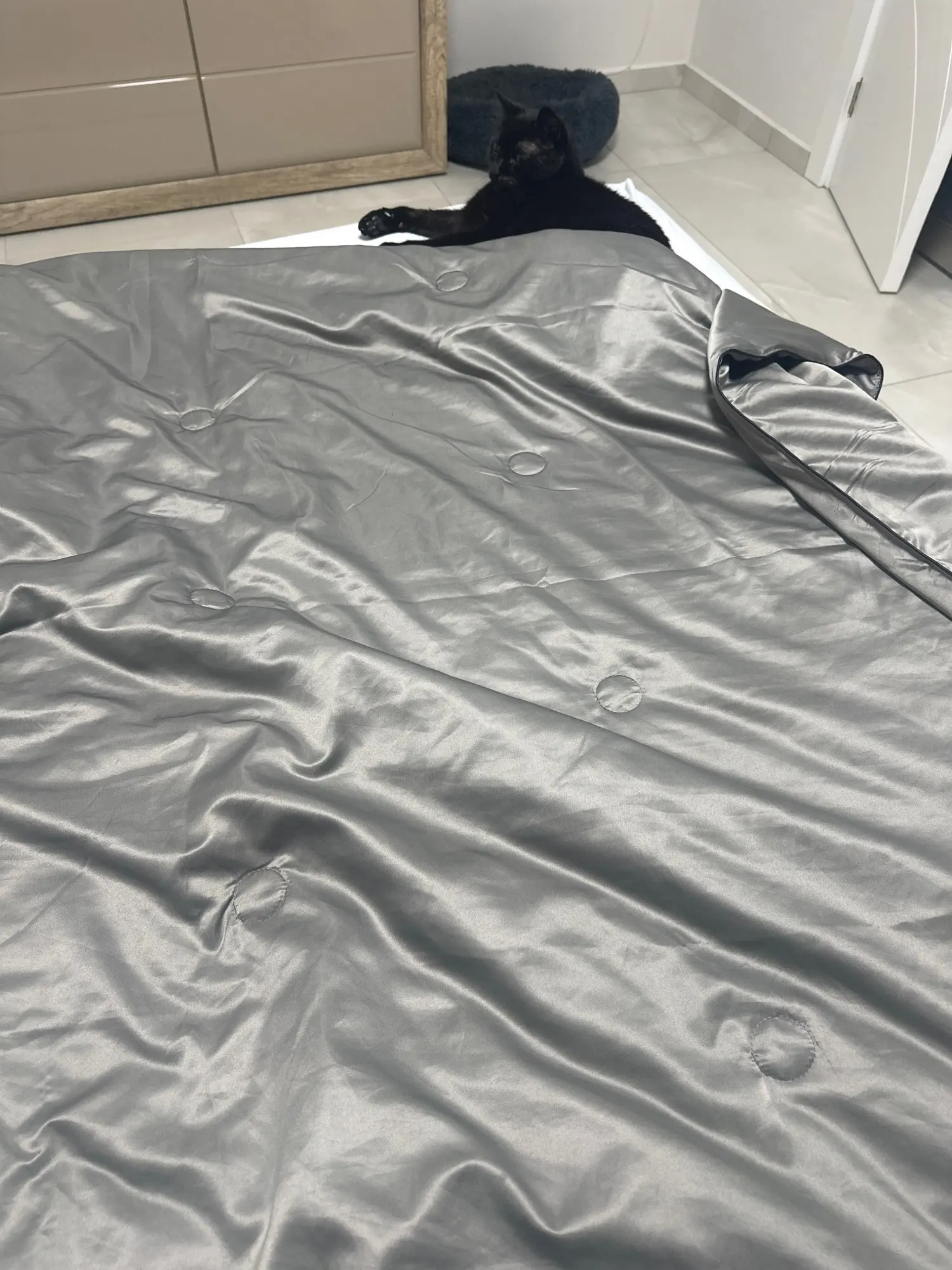 • Tissu extérieur : satin de soie glacée (soyeux, respirant et anti-statique).